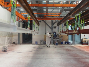 PREFAB brandwerend behandelen van staal: stralen (i.s.m. Steel Protection Group), primeren, coaten en drogen met BREEAM-gecertificeerde verfsystemen